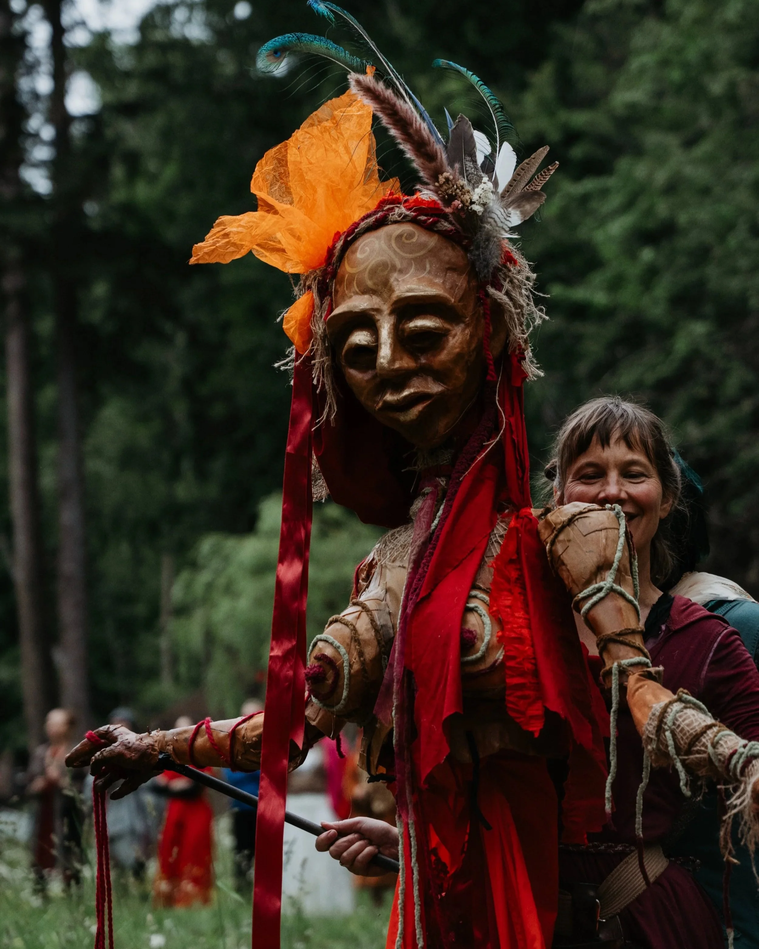 Prior to this ceremony I had a dream about the Phoenix (puppet created by Toni Tone and Giant Puppets Save The World) coming to bless the Ancestral Mask Puppet, as a symbolic representation of transforming any of the taboo, self-critical energies connected to the womb-blood within our entire lineage. It was such a powerful dream to have, and guided this next part of the ceremony.