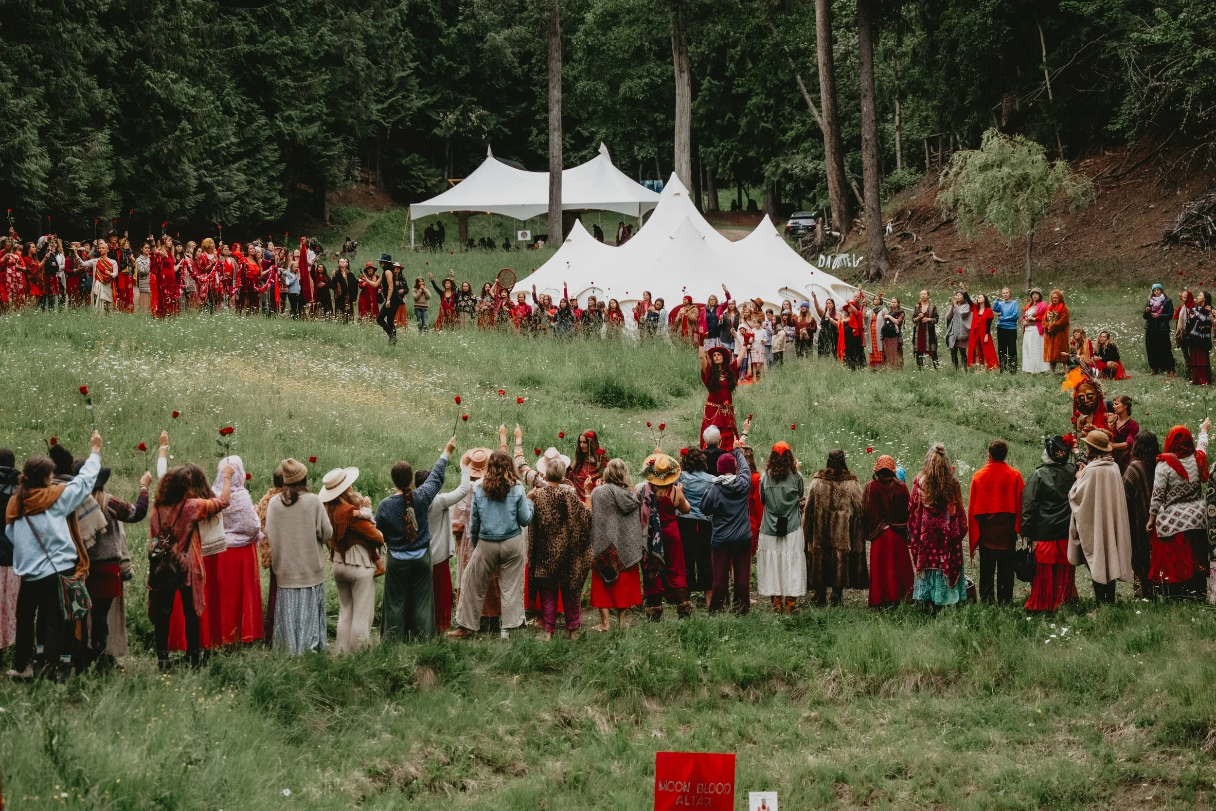 We were able to document this experience from above, showcasing a 700 person living art installation of a crimson river, a ceremony to commune witht he great motherline, womb wisdom and sacred blood-rite remembrances. I decided to write it down and share with my teachers what transpired here with so much beauty, tears, and treasured healing. I am sharing here with you as a way to remember what a powerful moment this was, and as a way to template this as a tradition of multi-modal procession as ceremonial art installation for the community of womb wisdom keepers and carriers of the rose lineage.