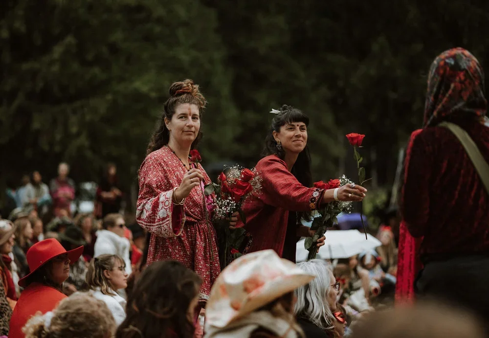 The ‘Crimson River’ Ceremony brought together 700 women to walk in honor of the red thread, the interconnecting essence that unites all women- the Blood. This was a procession for healing the ancestral connection to the womb, the rose petalled path, the rights of passage of birth and death, and the deep connection to the heart of woman.